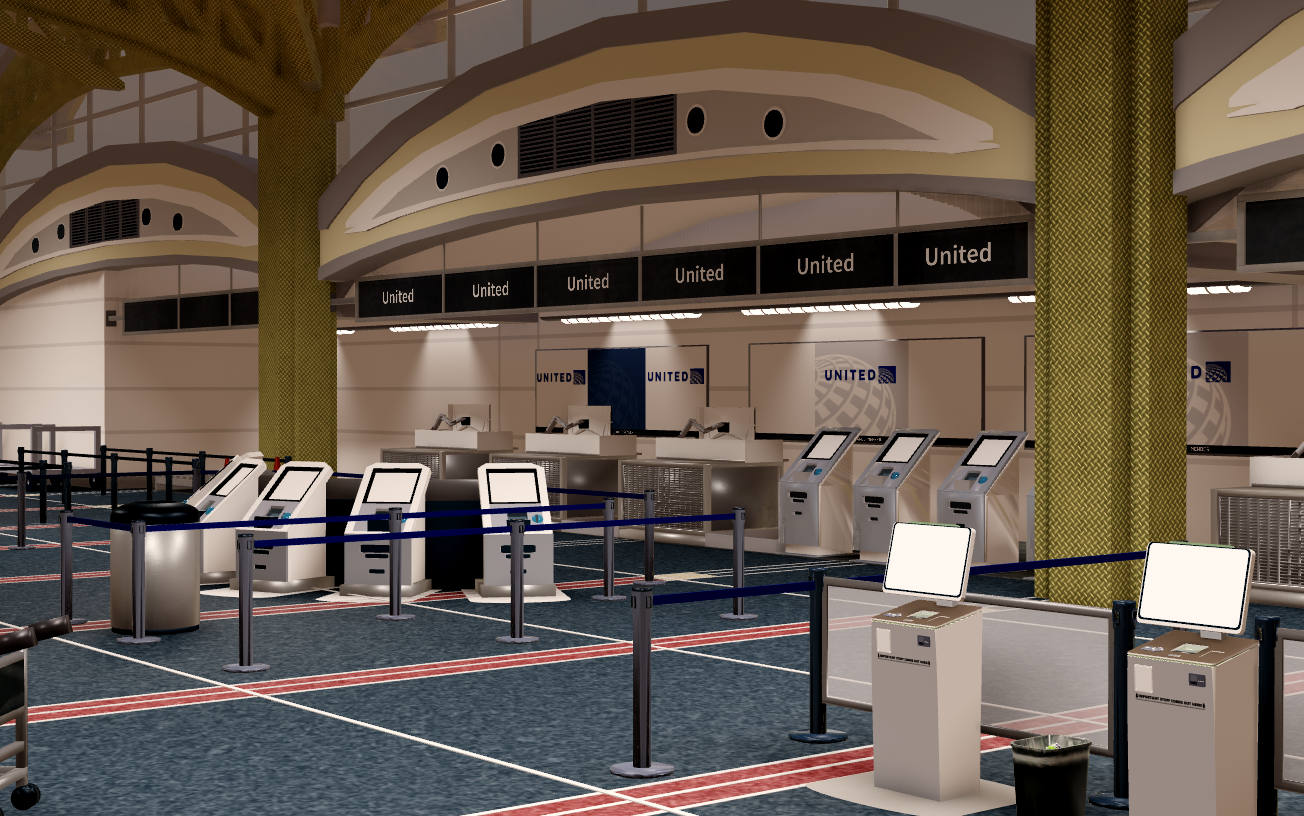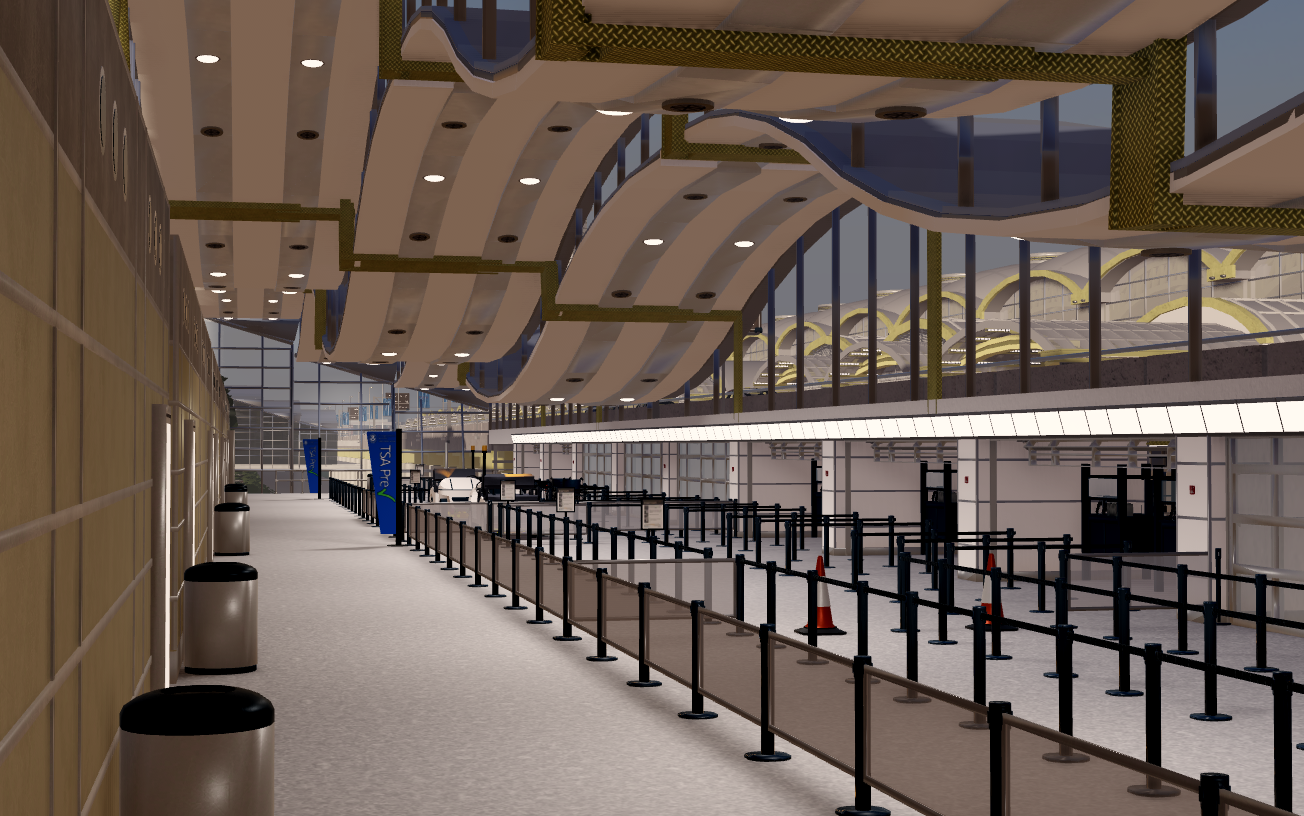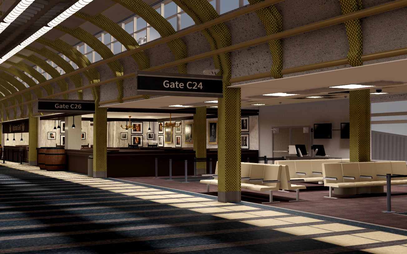 -Complete interior of Terminal A and the C gates. Also includes main check-in area and security.