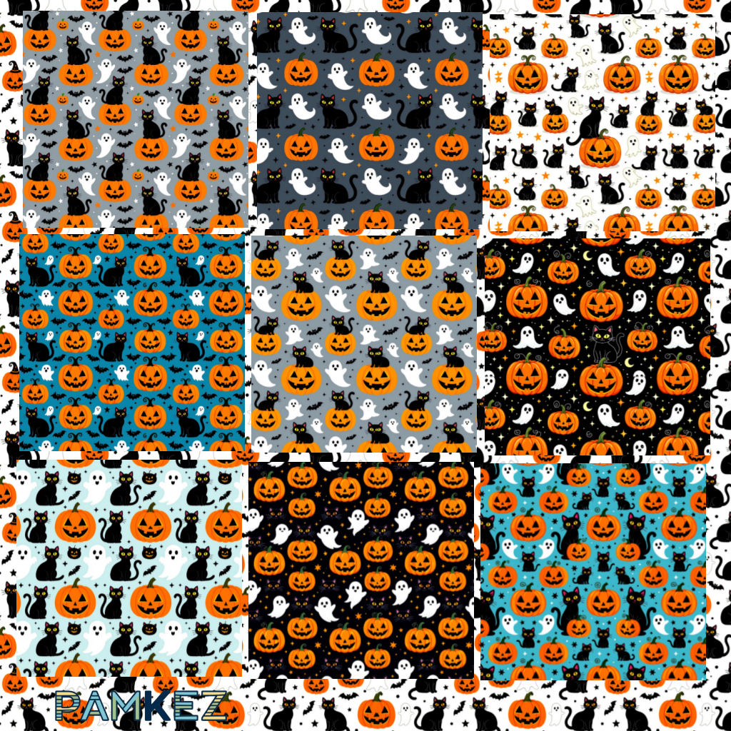 Get into the Halloween spirit with this fun and spooky digital paper pack! Featuring black cats, smiling jack-o’-lanterns, friendly ghosts, and playful bats, these seamless patterns are perfect for all your seasonal projects.
