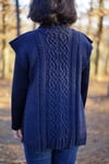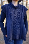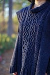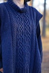 As a child I was obsessed with King Arthur and read as many versions of the Arthurian legends as I could get my hands on. And I always felt sorry for Bedwyr/Bedivere—the last knight of the Round Table left after Arthur’s departure for Avalon. This poncho is my tribute to Bedwyr; the steadfast, faithful last knight. The medieval-inspired cable panel lends an armorial look, while the comfortable silhouette and rustic yarn make it fit for all your daring adventures.
