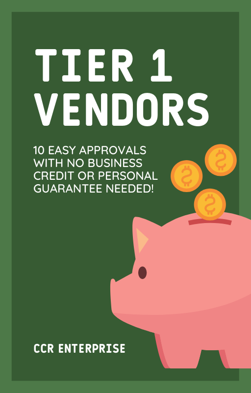 This ebook will outline 10 vendors that offer EASY approval for building business credit! No personal guarantee is needed! Use this vendor list to help you start building business credit, and get the supplies you need to help take your business to the next level! Follow each step, and you will be on your way to building over $30,000 in Tier 1 business credit funding!