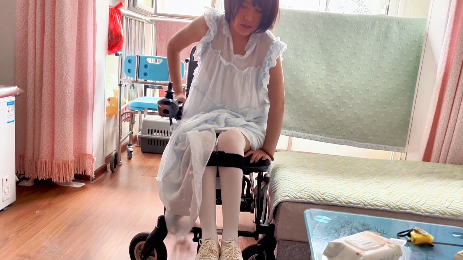 Mia: Paraplegic Girl-One-piece black stockings and high heels diaper change
