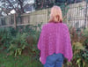 This cosy poncho, perfect for chilly autumn and winter days, features a lace stitch worked in aran-weight wool. It is knitted sideways as a large rectangle, with garter stitch edges, and then seamed along the top, leaving an opening for the head.