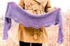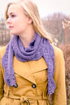 Luxury yarn and beads pair together creating Hoopla, an elegant long stole with a fancy hoopskirt border. Short row shaping makes a lovely crescent and a face framing beaded shawl collar. Unusual and fun edging stitches keep the knitting interesting, while soothing garter stitch ensures rapid progress; together the result is stunningly simple.