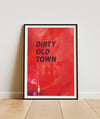 This artistic poster pays tribute to the iconic song Dirty Old Town. Featuring deep red tones and a textured urban design, it blends vintage atmosphere with modern graphic energy.