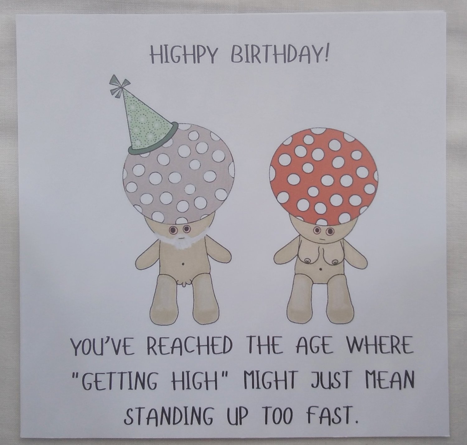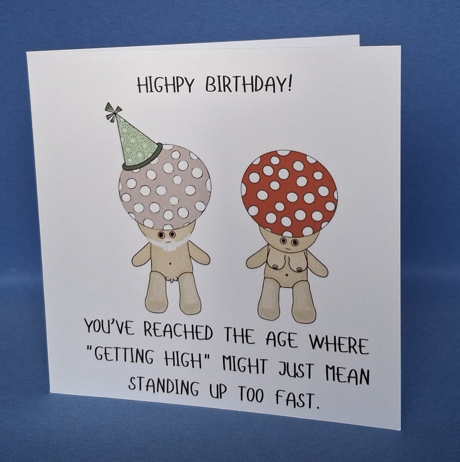 Highpy Birthday! You’ve reached the age where "getting high" might just mean standing up too fast – Funny Adult Square Birthday Card for 18+ with Matching Envelope – Perfect for Adults Only