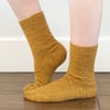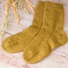 A fun honeycomb-themed pair of socks. The socks are worked as mirror images, so when you put your feet together you create a honeycomb. Worked from the top down in 4ply / fingering weight yarn.