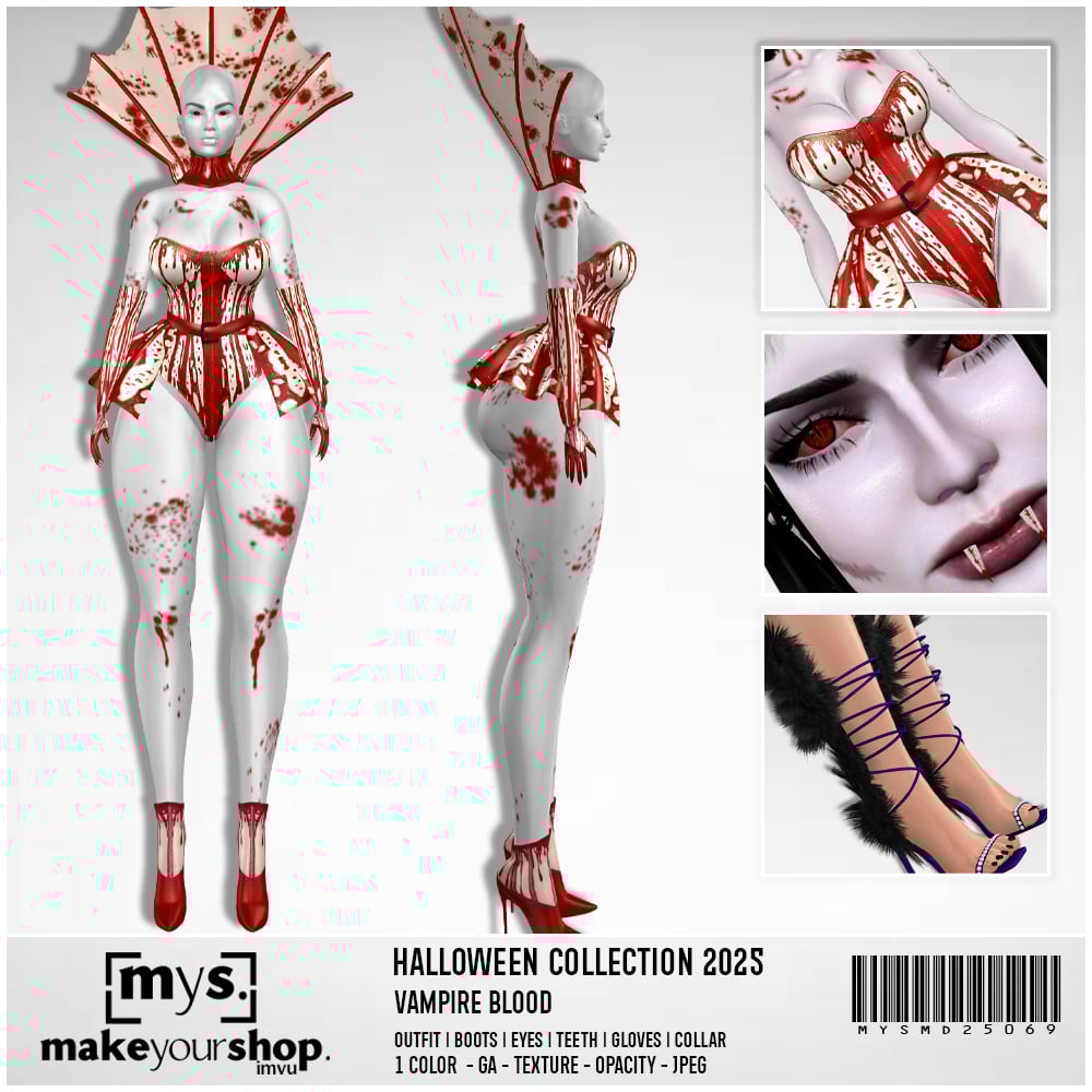 VAMPIRE BLOOD: outfit, eyes, collar, teeth, boots, gloves