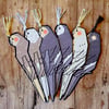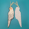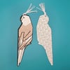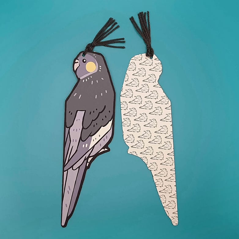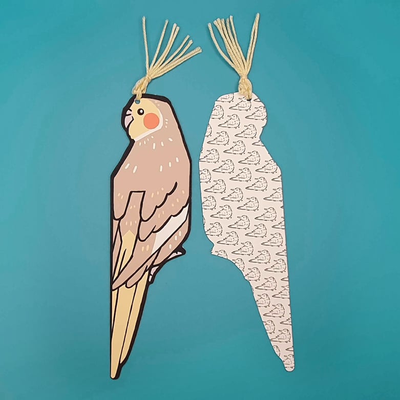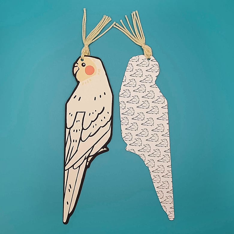 The cockatiel bookmarks are made of sturdy 400g/m² paper from FSC controlled wood. The paper is semi-smooth with a light texture. Note: The surface is not splash- or waterproof.