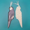 The bookmark's tassel, which acts as the cockatiel's feather crest is handcrafted from 100% cotton yarn of EU origin.