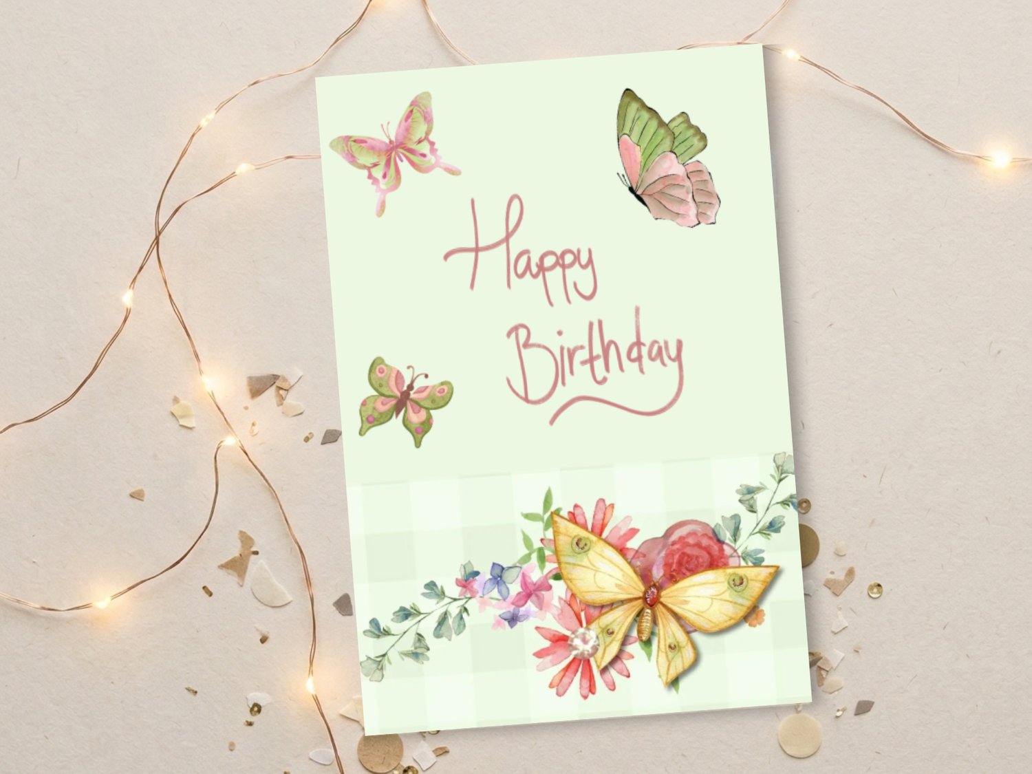Send sweet birthday wishes with this pastel butterfly-themed printable card!