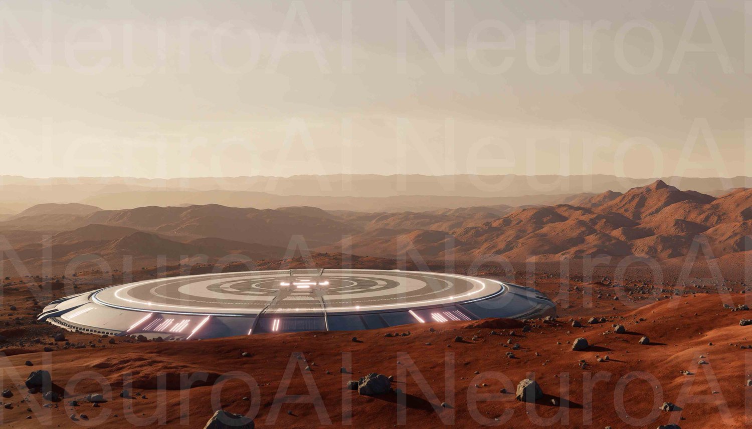 Futuristic landing base on Mars landscape design