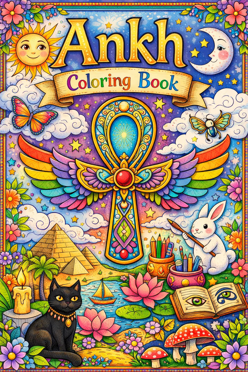Ankh, 90 designs, coloring ebook, digital printable product, instantly download.