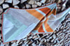 Travel Mode ist ein rechteckiges Tuchl mit einer nahtlosen modularen Konstruktion, die ein in der Mitte gespiegeltes Fischgrätenmuster ergibt. Das Tuch wird in Kraus-Rechs mit Details in Lochmuster und einem I-Cord-Abschluss gestrickt. Obwohl für 1 Haupt- und 7 Kontrastfarben konzipiert, kann mit beliebig vielen Farben gestrickt werden. Die 7 kontrastierenden Farben, die einen Farbverlauf bilden, können in verschiedenen Reihenfolgen verstrickt werden, wodurch zwei verschiedene „Farbreisen“ entstehen, wobei die Farben auch zufällig verwendet werden können.Travel Mode wurde ursprünglich für den Frida Fuchs Adventskalenders 2021 entworfen.
