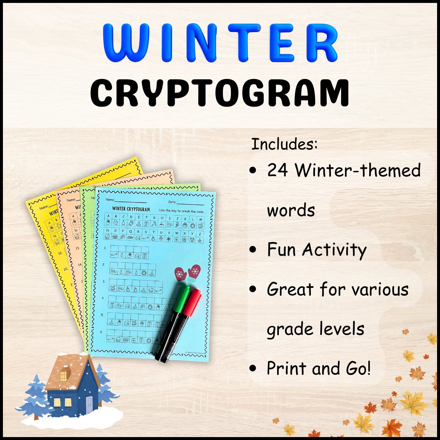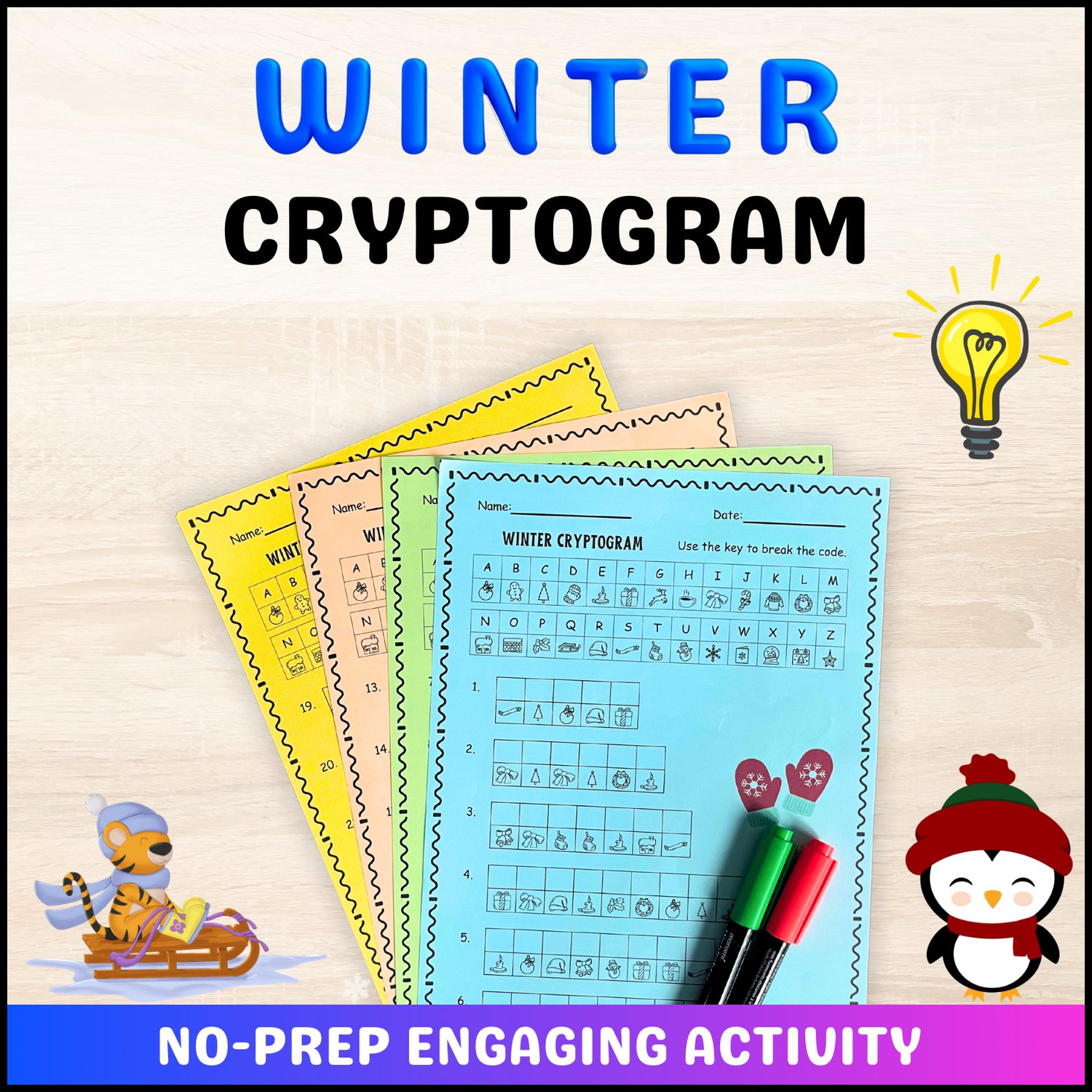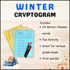Looking for a NO PREP winter resource that can be used in various classroom settings? Use Winter-Themed Vocabulary Cryptogram Code Breaker Worksheets! Perfect for activities such as vocabulary building, handwriting practice, morning work, sub plans, brain breaks, independent work, and more. Your students will decode 24 winter-themed words. Students love cracking the code; it's like detective work, revealing mysteries.