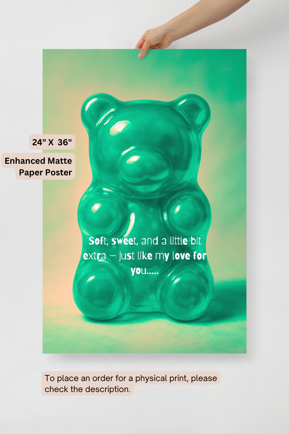 This art print isn’t just a cute gummy bear — it’s a bold reminder that love can be sweet, a little extra, and totally irresistible.