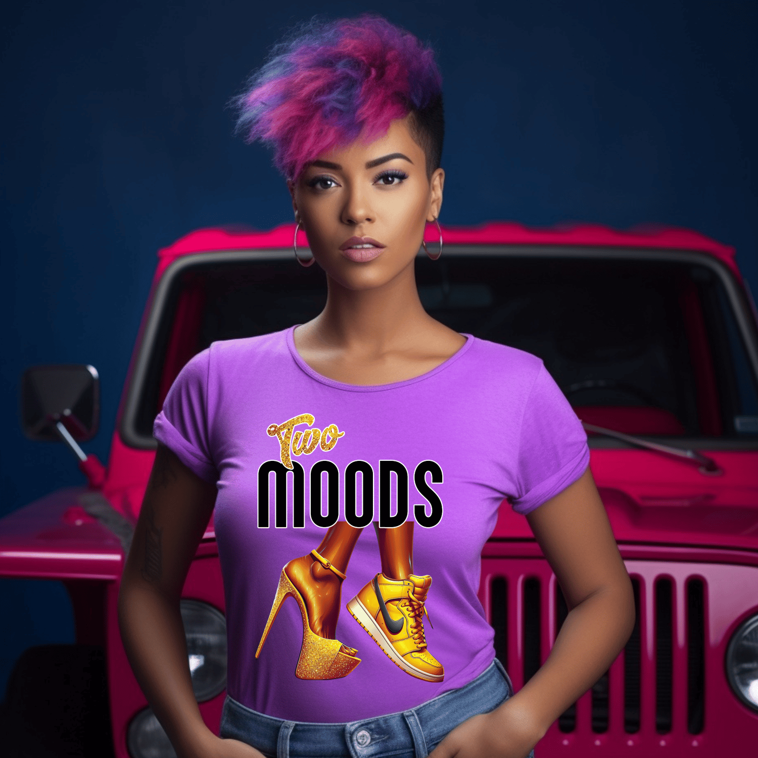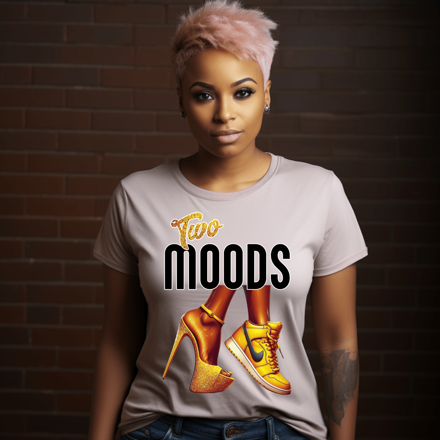 Two Moods PNG – Yellow Gold Sneaker & Heel T-Shirt Design – Luxe Dual Vibe Digital File for Sublimation, DTF & Printable Vinyl