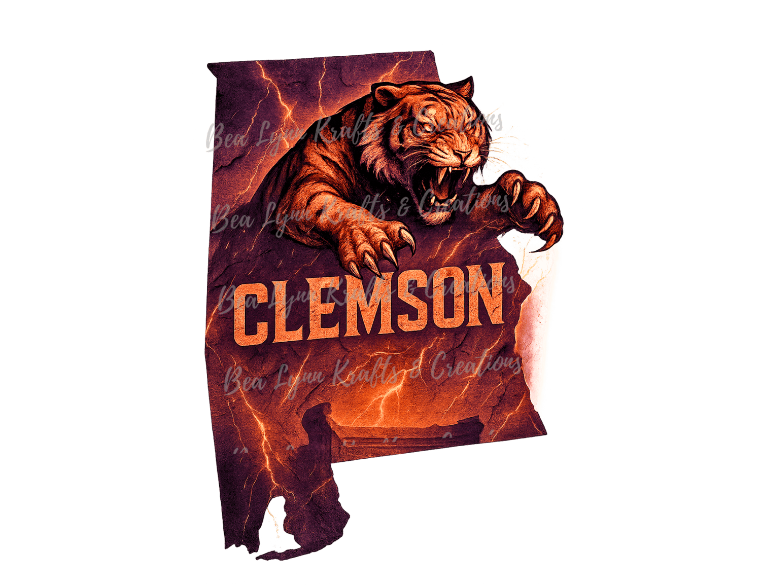 Clemson Tigers PNG | Roaring Tiger Over South Carolina Map with Death Valley | Digital Fan Art for Apparel & Game Day Merch