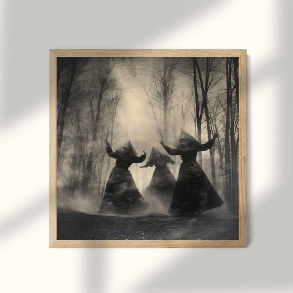 Transform your space with this enchanting printable art featuring whimsical witches dancing in a mystical woodland setting. Perfect for adding a touch of magic to your home decor or gifting to a fellow witchy friend. Instantly download, print, and frame this unique piece of art to bring a spellbinding vibe to any room.