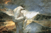 Homoerotic artwork of a naked man carrying his friend away from peril.