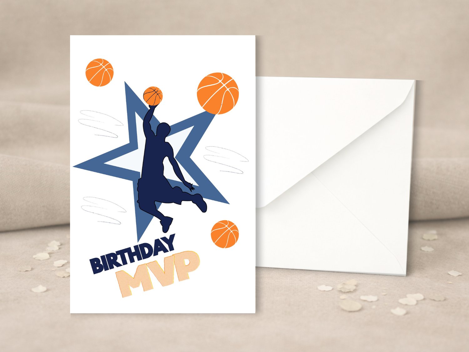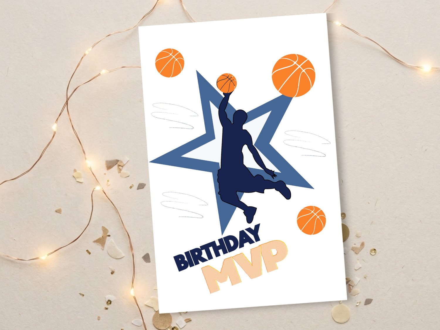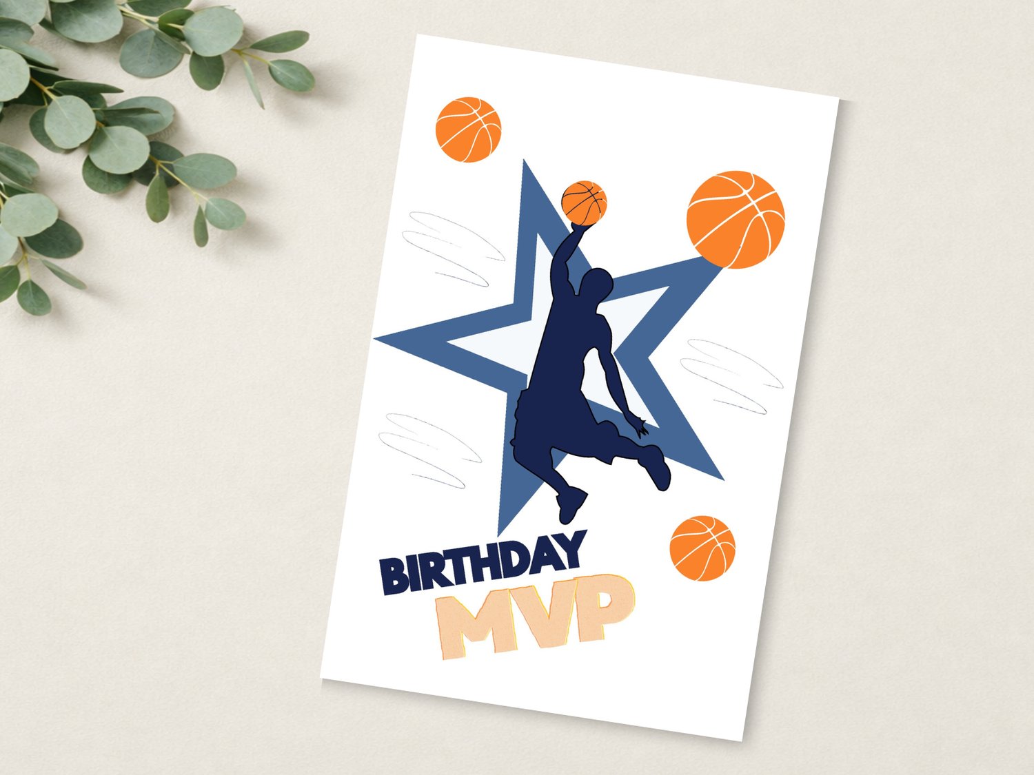 Celebrate their birthday like a true MVP. This Basketball MVP birthday card is perfect for basketball fans who love the game and deserve a little extra recognition on their special day. If you need a card fast and donβt want to make a last-minute trip to the store, this printable card makes it easy. Just download, print, and youβre ready to go.