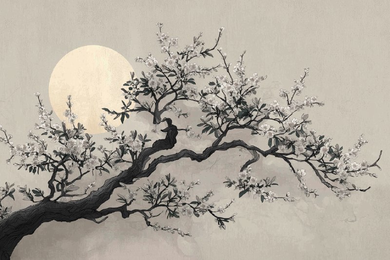Luxury Japanese Sakura Wall Mural – Premium Ink Art Prompt