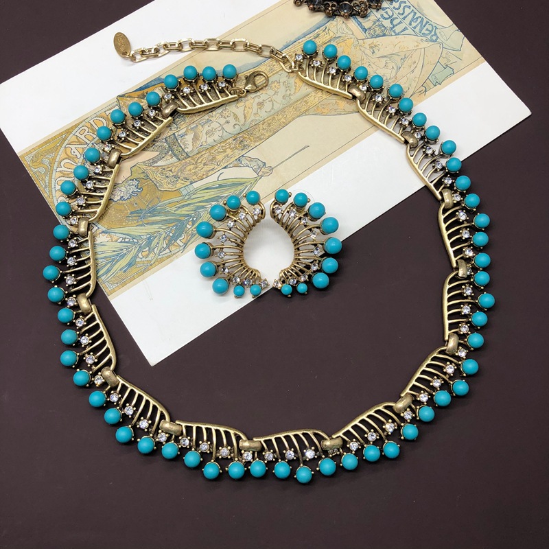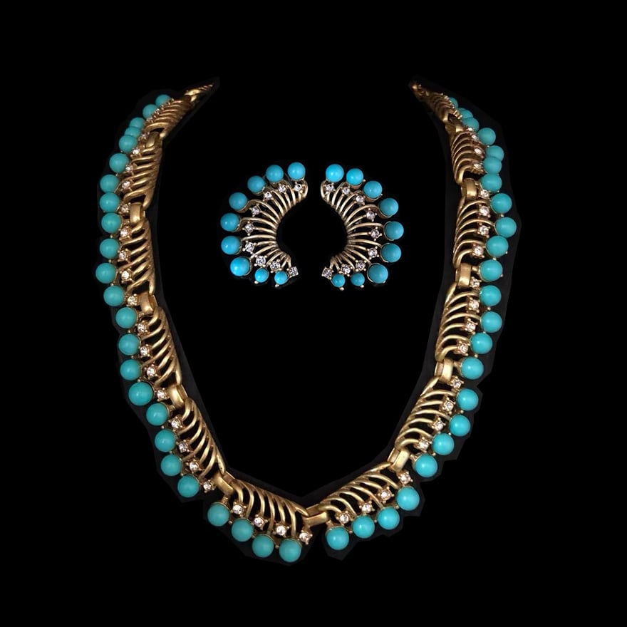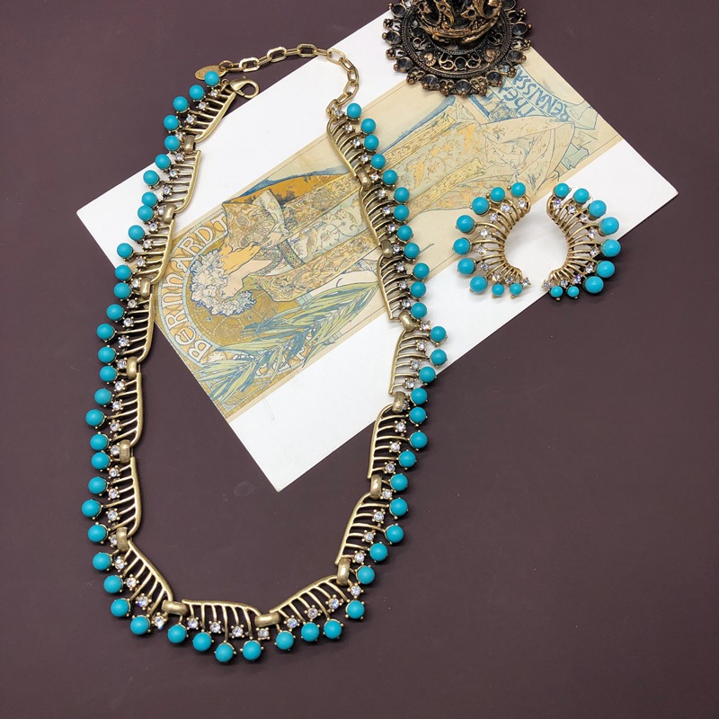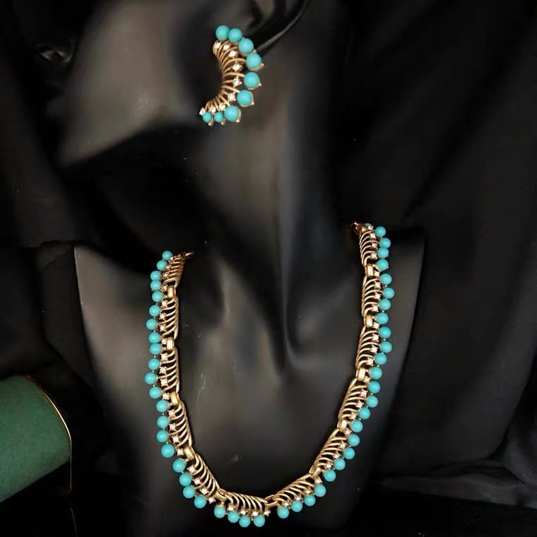 French vintage turquoise earrings necklace set