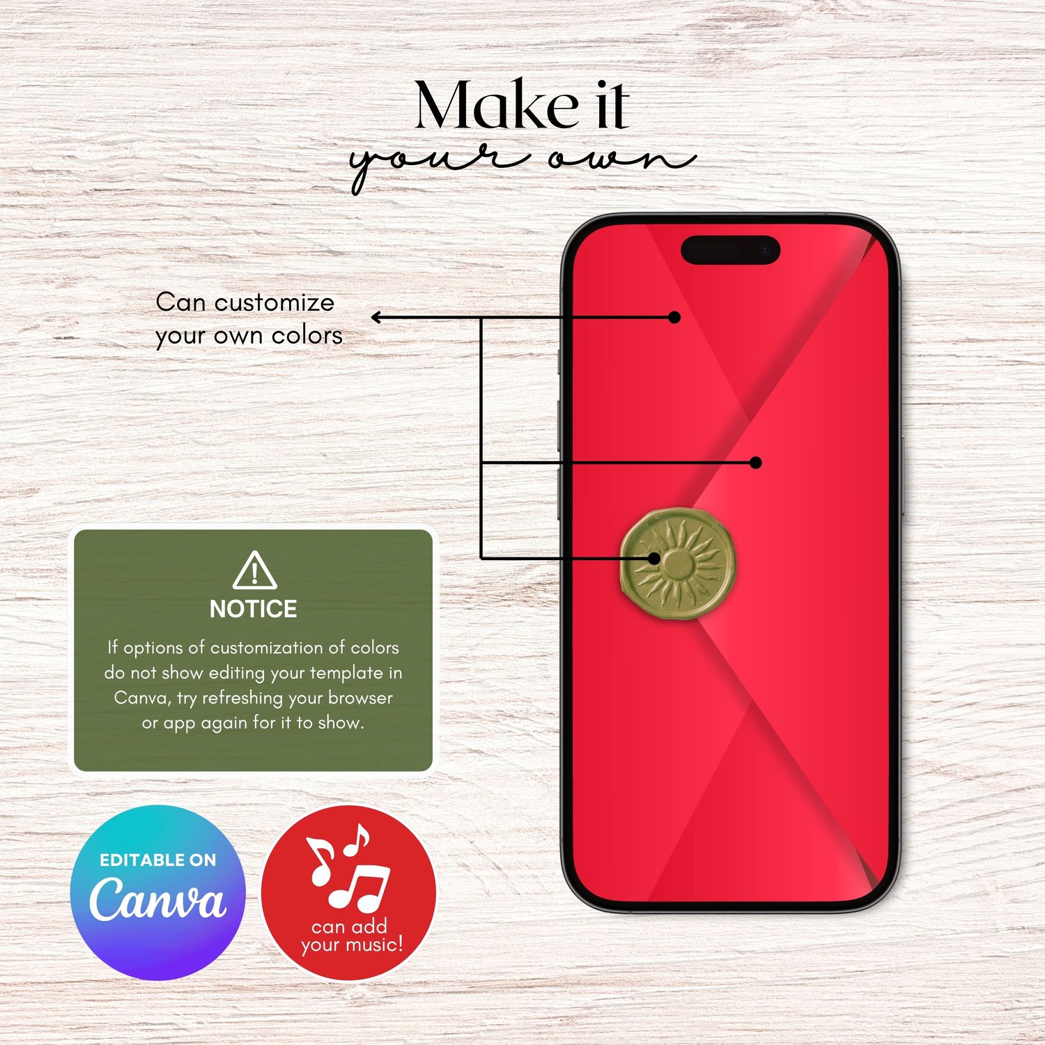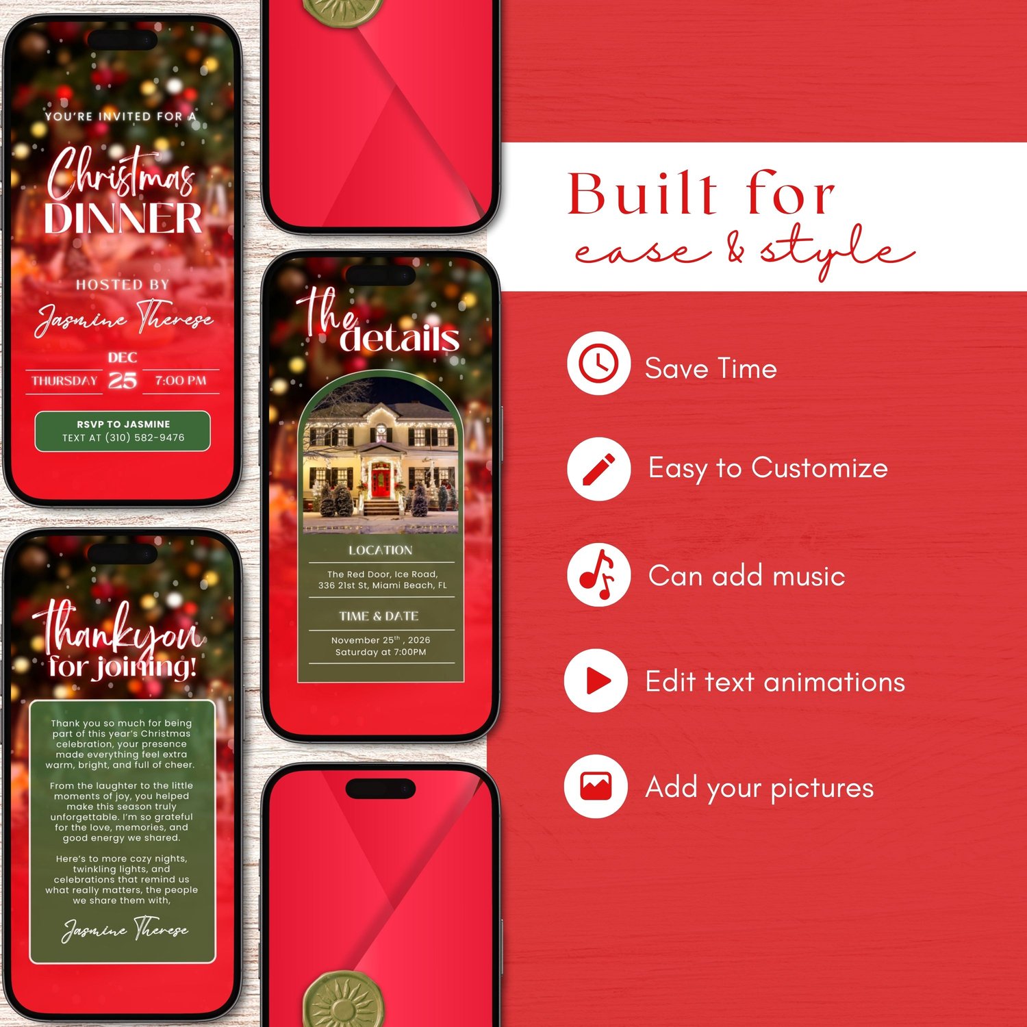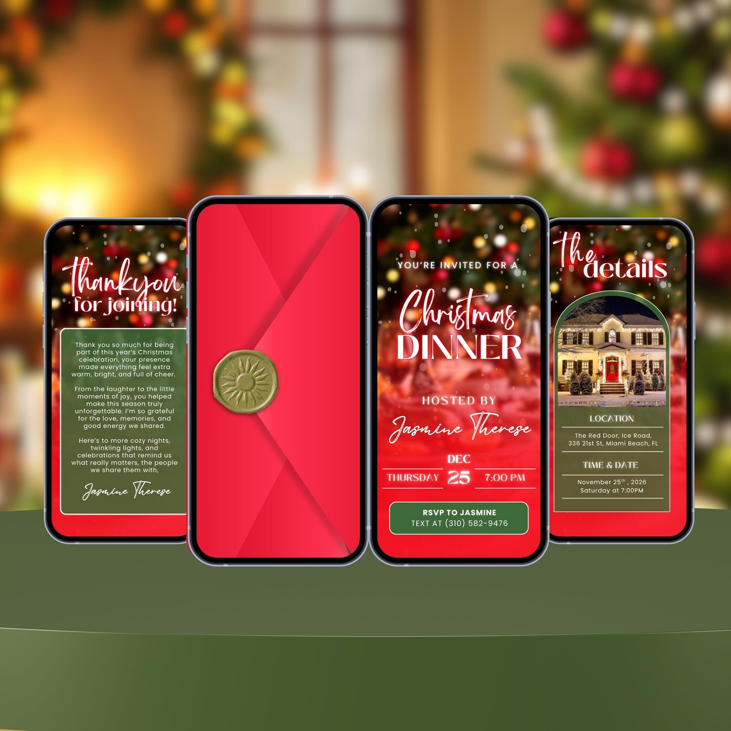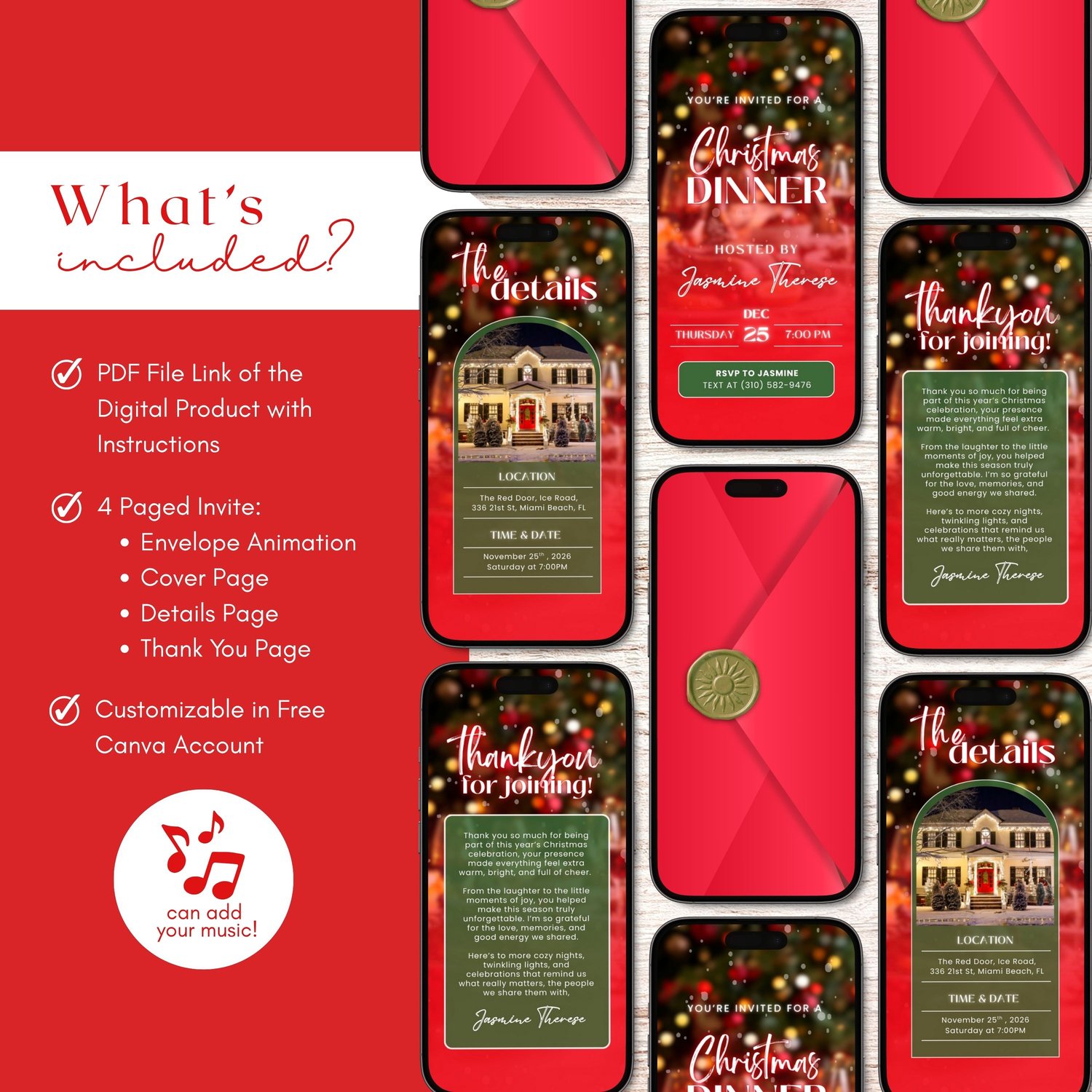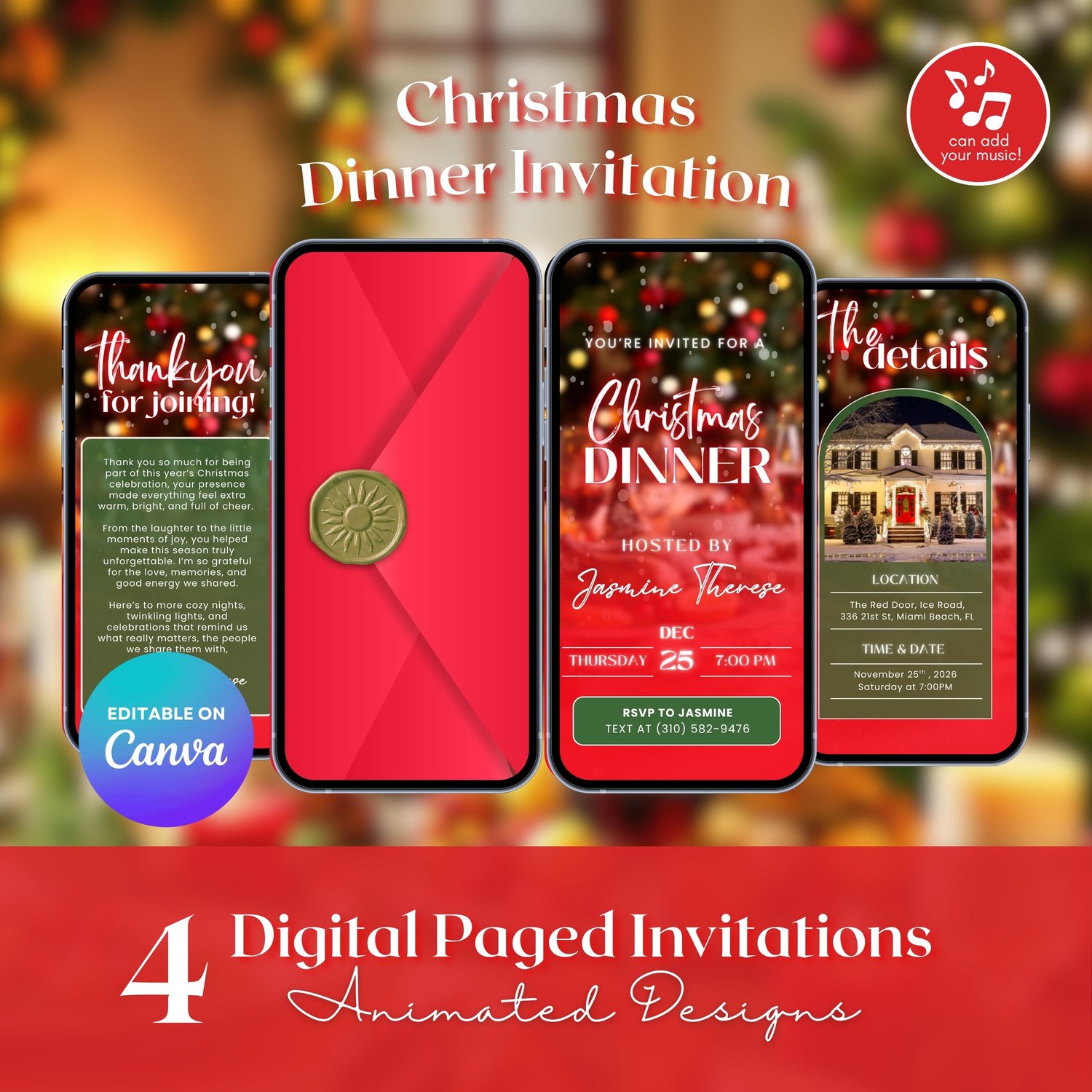 ๐ Christmas Dinner Invitation with Animated Envelope | 4 Editable Animated Mobile Canva Pages ๐