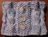 This toasty neckwarmer will keep you cozy on the coldest days. The pattern is a simple but effective combination of moss stitch and cables. The resulting knit fabric is close-fitting but not constricting around the neck. The button closure allows for easy wear and provides a classic finishing touch. This is a terrific project for a quick gift or a single skein of special yarn.