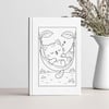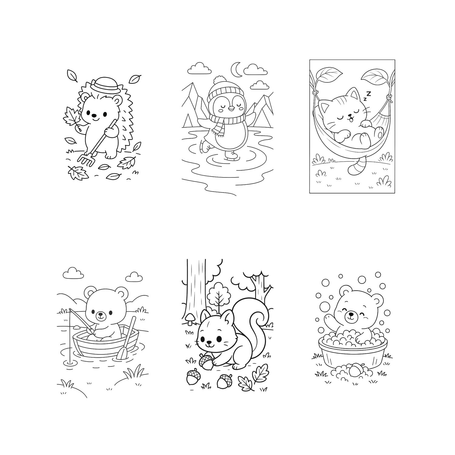 Each illustration features charming kawaii animals in clean black & white line art – perfect for coloring pages, scrapbooking, card making, printables, and POD products.