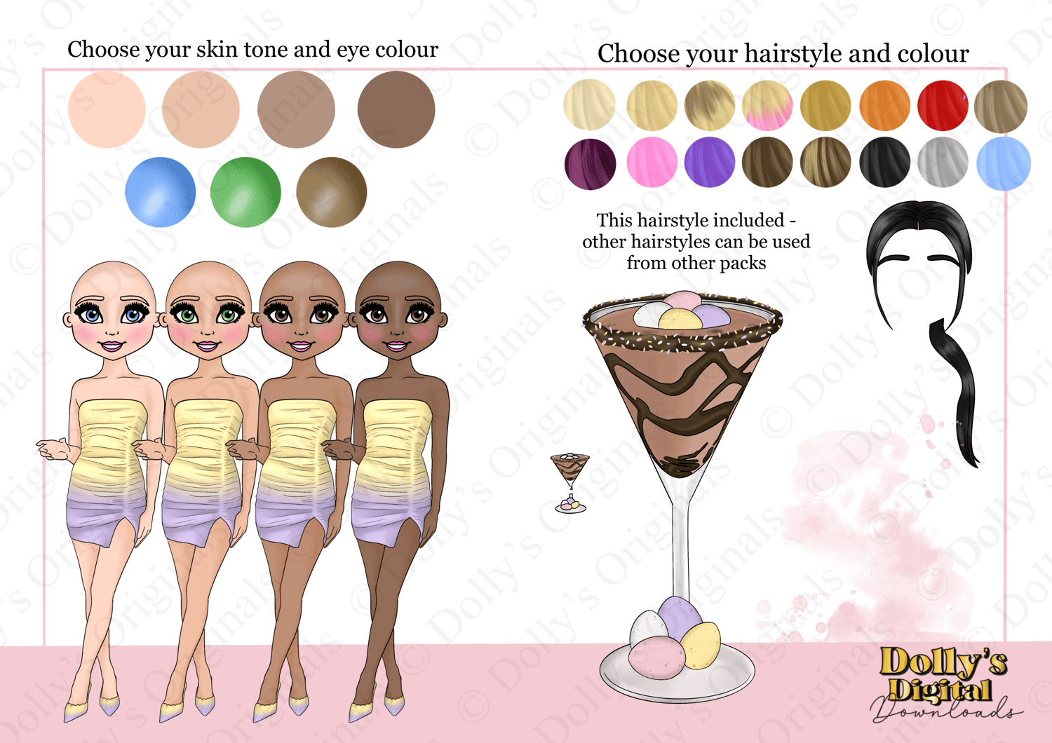 Instant digital download of our Mini Eggs Cocktail Dolly Character Bundle PNG (35 PNG’s)