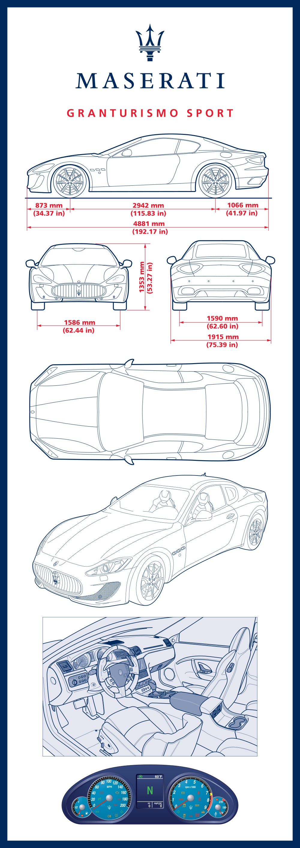 Maserati Granturismo Sport 2015 Car Blueprint PDF SVG Vector Drawing.
