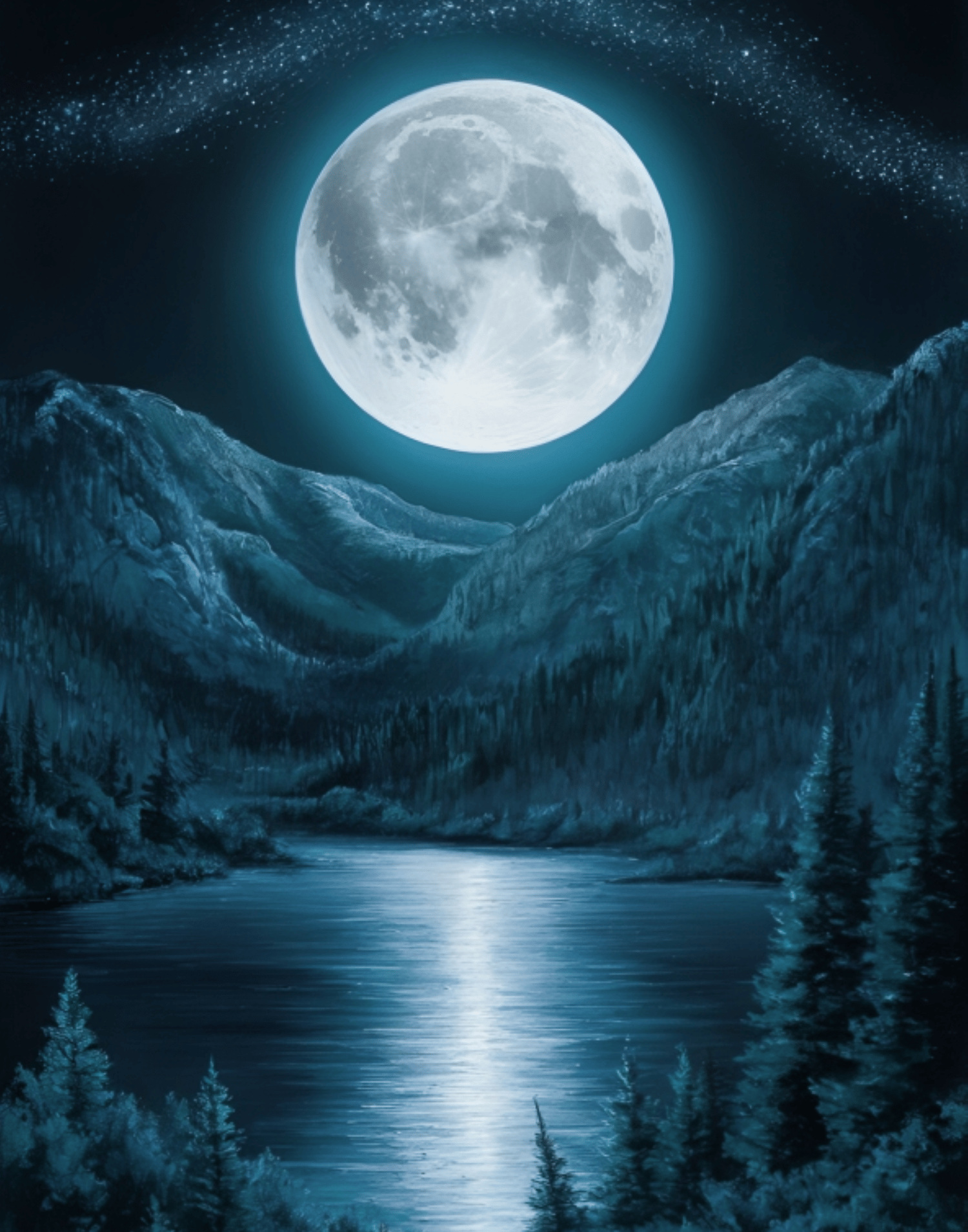Moonlight, Starry Sky, Serene Lake Landscape, Calm Forest Landscape, Mountain Landscape, nocturnal Beauty, Vintage Nightlife Nature, Natural Wall Art, Vintage Landscape, Nostalgic Nature, Cool Nature, Rustic natural Landscape,Painting.