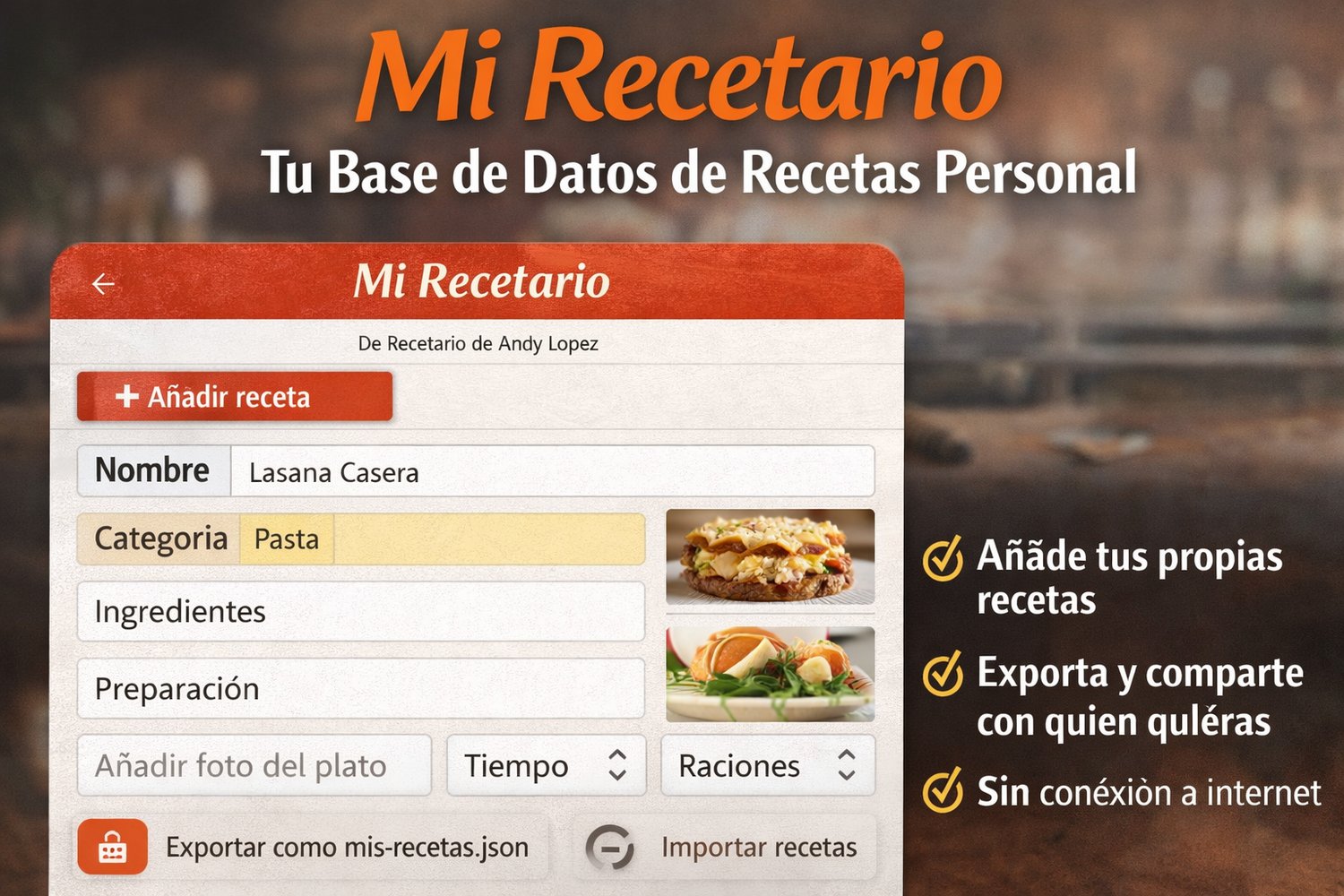 Esta herramienta te permite crear tu propia base de datos de recetas para uso personal.