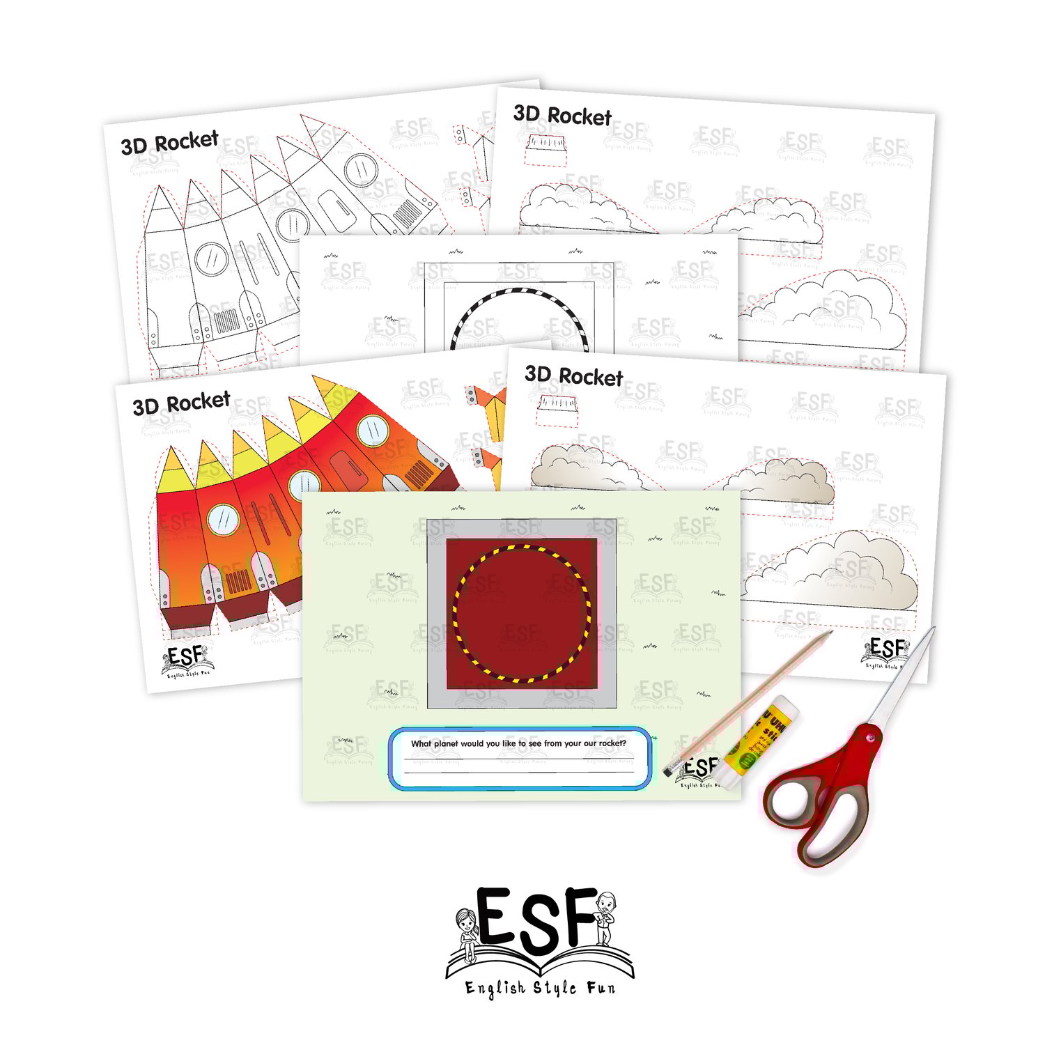 Here is another fun 3D activity! This hands-on easy activity is a cut and build 3D pop up scene and will provide kids with a visual aid of what a rocket launch pad looks like, and to help expand a child's imagination while constructing sentences independently.