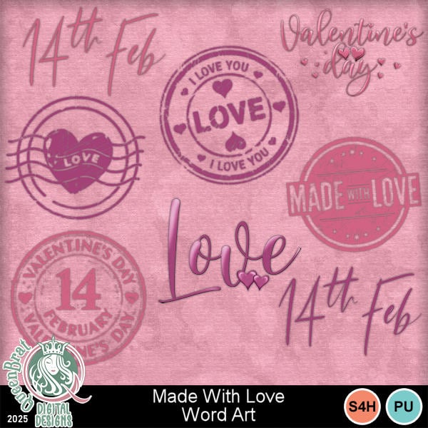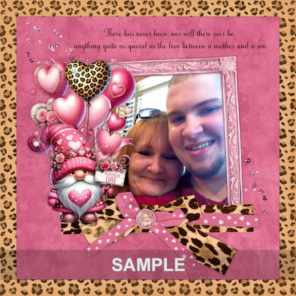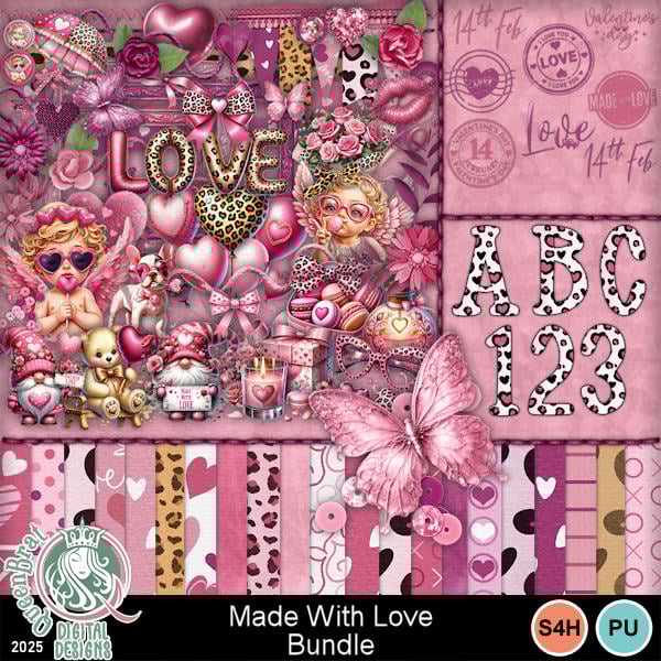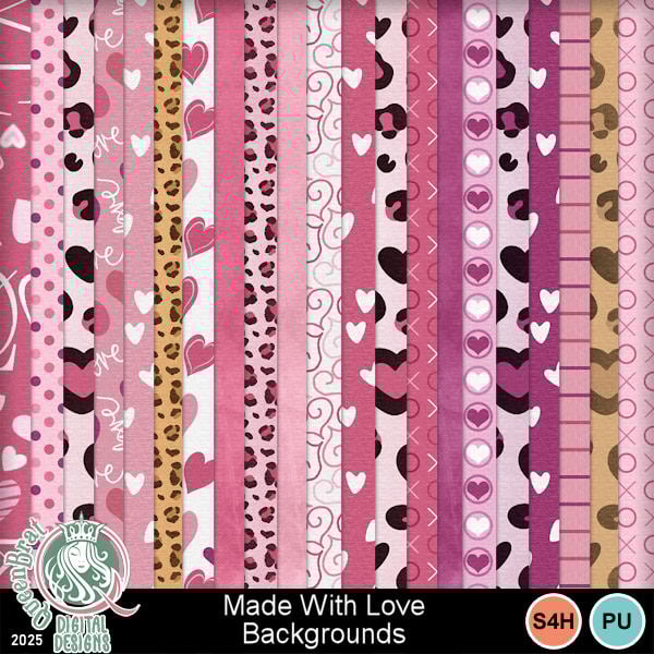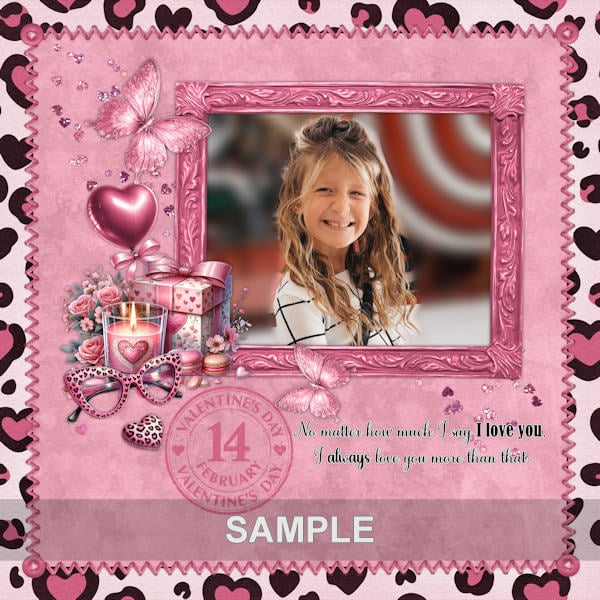 A cute Valentine/Love kit in hues of pink and purple. Kit has lots of girly and leopard print elements and papers. This is a must have for you "LOVE" projects!