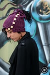Arcus is a playful ponytail Hat featuring a cabled band and a spotlight for your favourite buttons! The pattern is straightforward to knit, worked sideways, without any short rows or shaping.