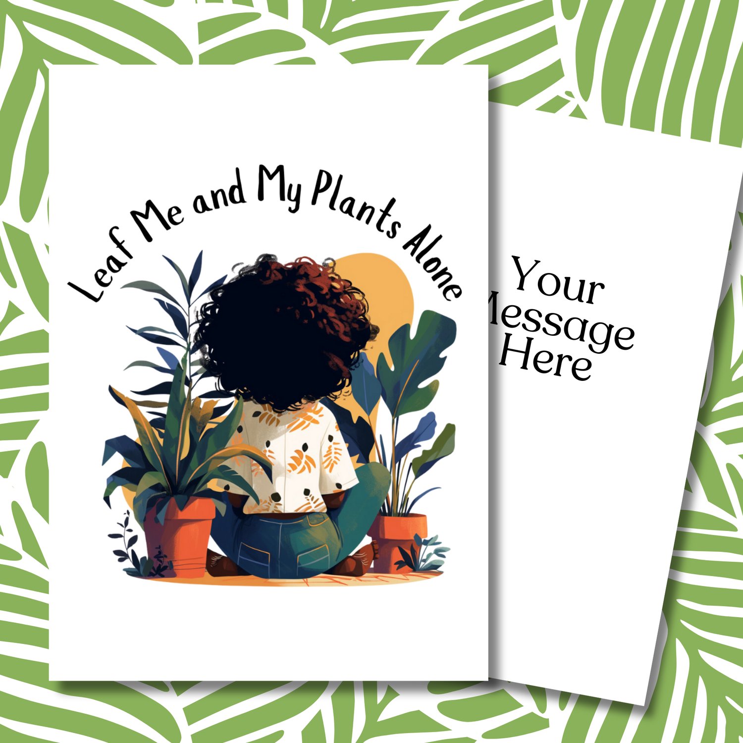 Leaf Me and My Plants Alone Greeting Note Card | Blank Inside | Black Girl Greeting Card