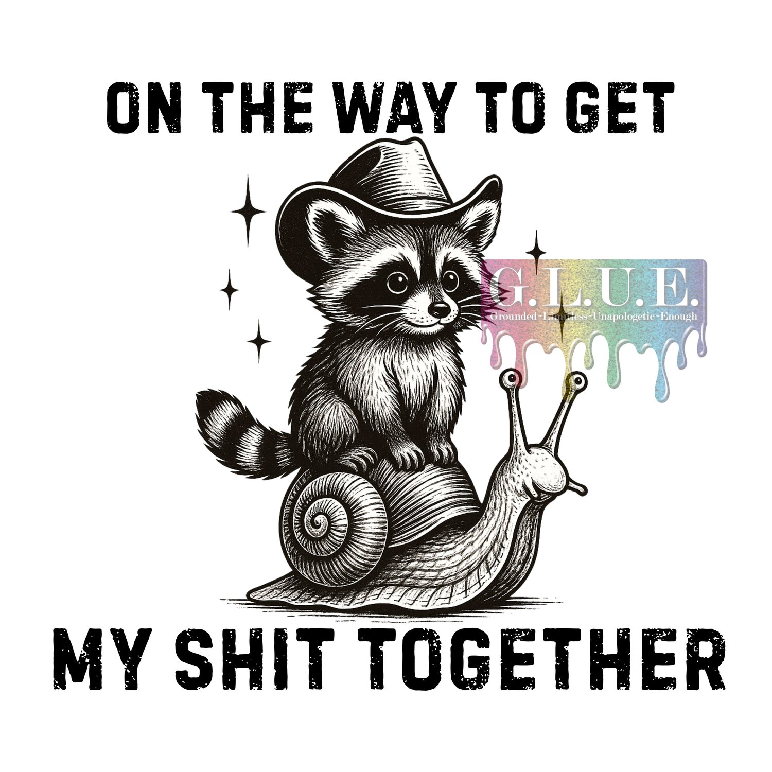 Sometimes life feels slow, messy, and all over the place… but hey, at least you can look fabulous while getting it together! This Cowboy Raccoon Riding Snail PNG is the ultimate reminder to take it one (snail-paced) step at a time—with a little country sass and a lot of style.