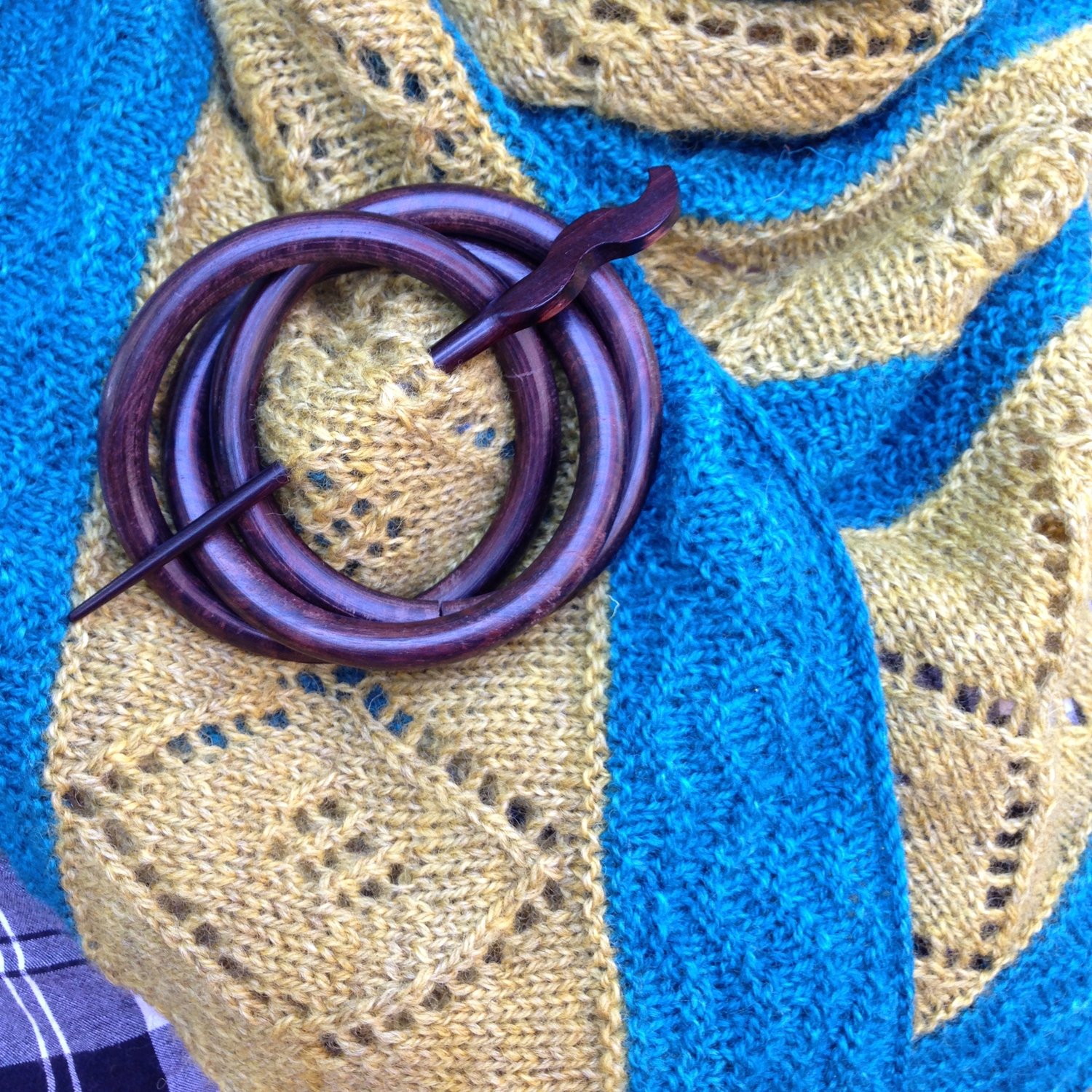 This two-colour triangular shawl, knit from the bottom up, is inspired by Voyager (the 3rd book in the Outlander series by Diana Gabaldon), which is the inspiration for the 3rd season of the hit tv show Outlander coming this September.