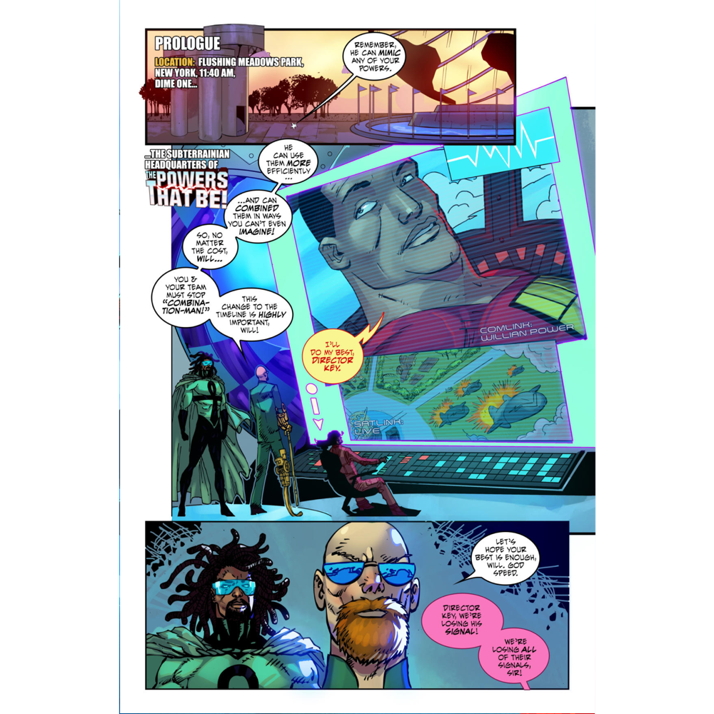 DIME (Dimensional Reality) 72 is under attack by a powerful villain. Their last remaining hero, Octave, goes to Director Key for help, only to find no one within the Panopticon (the secret base of the Powers). What happened to everyone will have to wait! Octave must create a new SUPERTEAM to help him deal with the dire situation in his DIME.