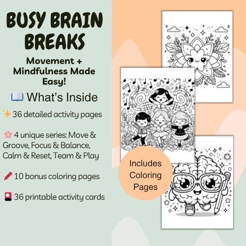 This printable pack includes 36 creative activities that help kids release energy, reset their minds, and re-engage with learning — all through movement, mindfulness, and play.