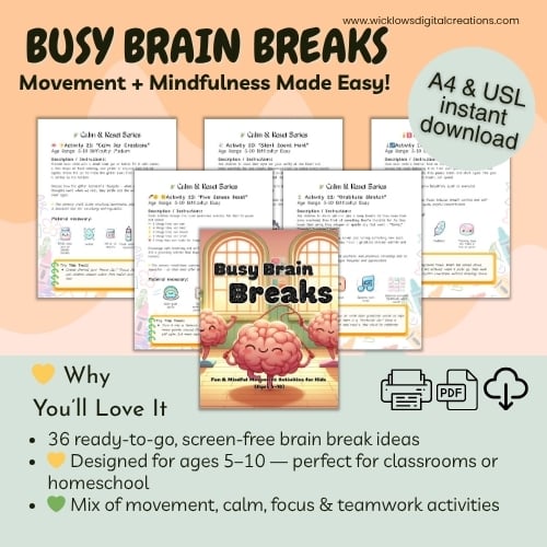 Designed for children aged 5–10, these brain breaks are perfect for: