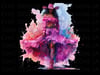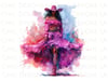PNG Purple Watercolor Black Cowgirl Wearing Purple Fit, Cowgirl Hat, Ruffle Skirt and Boots with Transparent Background