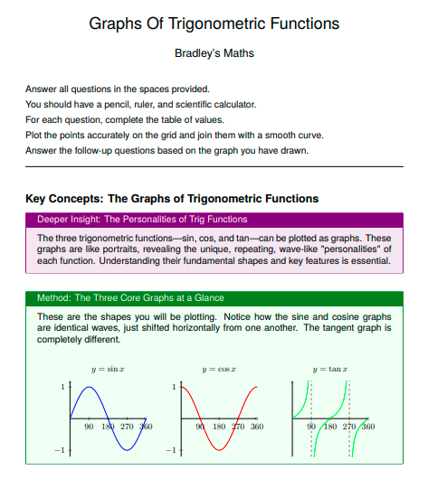 - Key Concepts: The opening section of the worksheet tells you what the worksheet contains and how to answer the questions with fully worked methods, deeper insights, pro-tips and how to avoid the typical student errors.