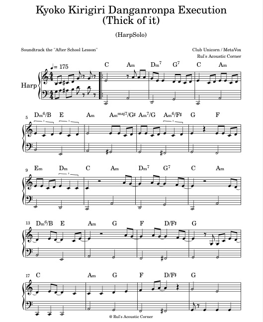 Kyoko Kirigiri Danganronpa (Thick of it) | Harp Solo PDF Audio
