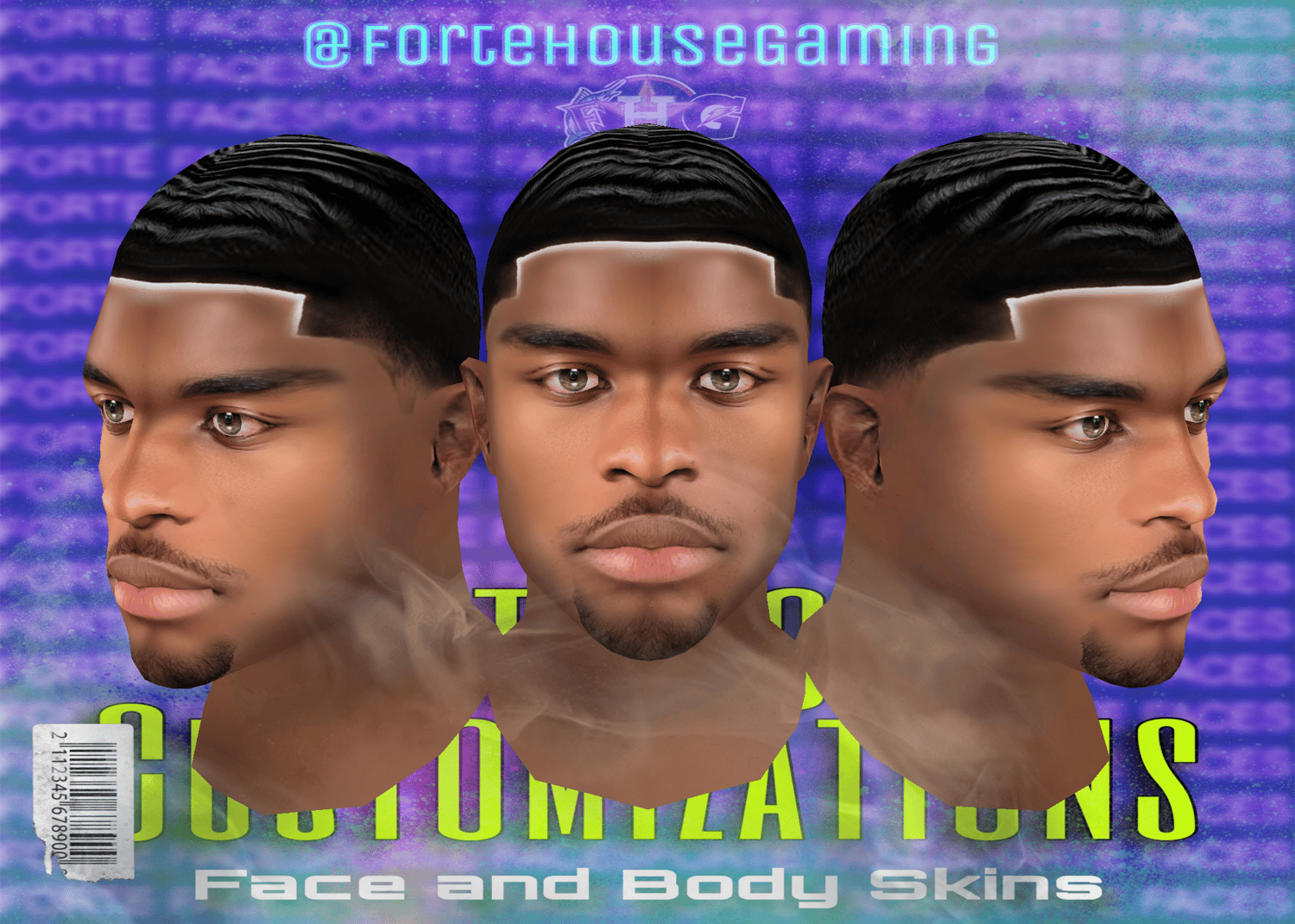 - Custom chin hair, tattoos, and lip detailing for added personality