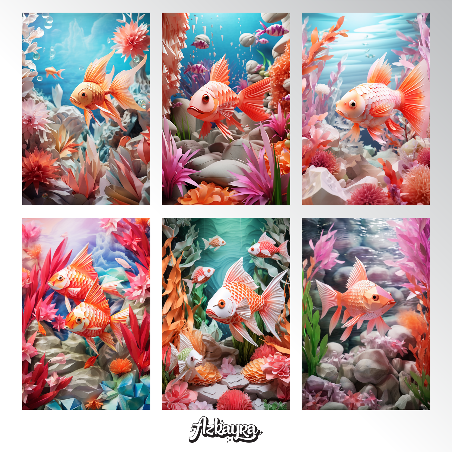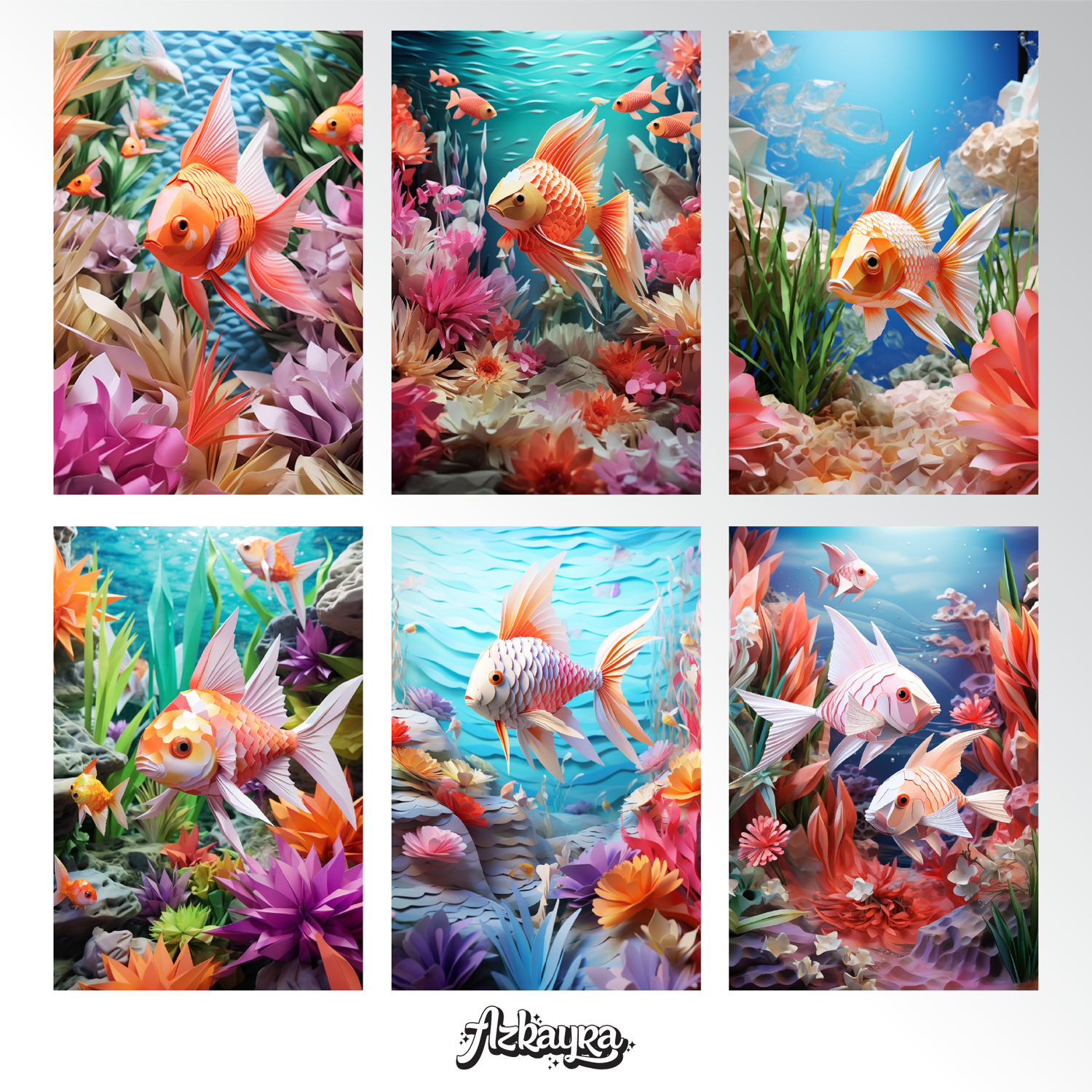 🏞️ Underwater Inspiration: Transport your audience to the depths of the ocean with intricate origami-inspired fish art set against a backdrop of mesmerizing coral reefs.
