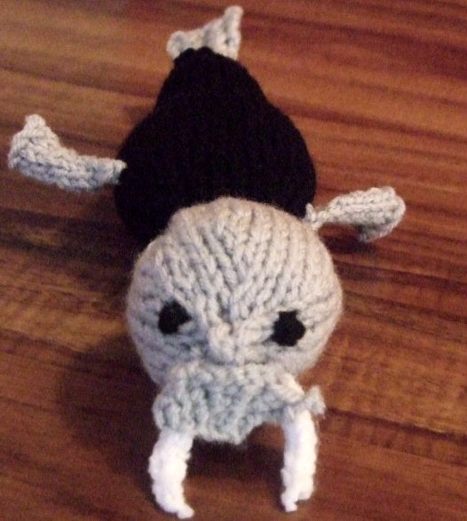 Gauge is not important to this project, as it’s a toy and not a garment. The only thing that matters is that you must knit tightly enough to ensure the stuffing will not show through the work.