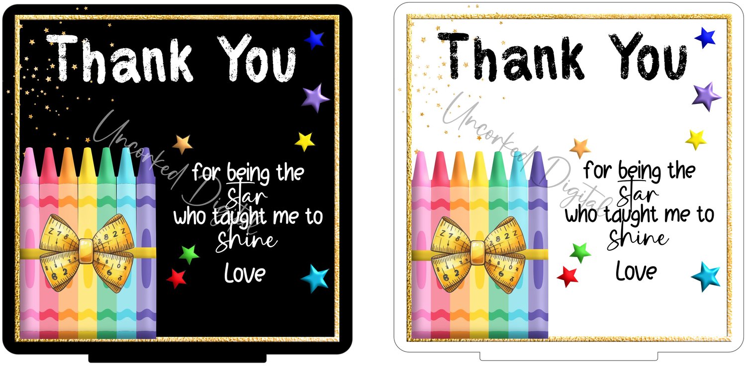 Star teacher designs to fit the blank 12cm square plaques on stands from Woodform Crafts - Product - WC2274.