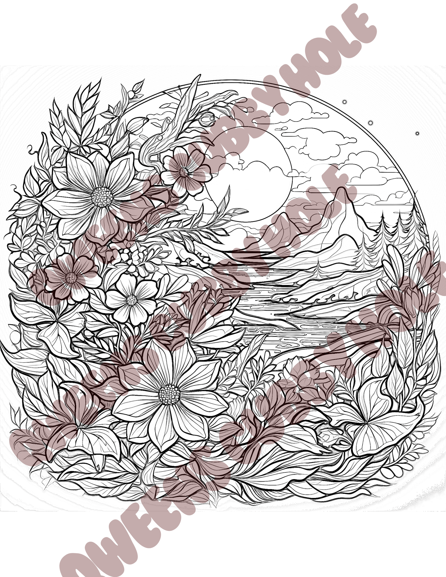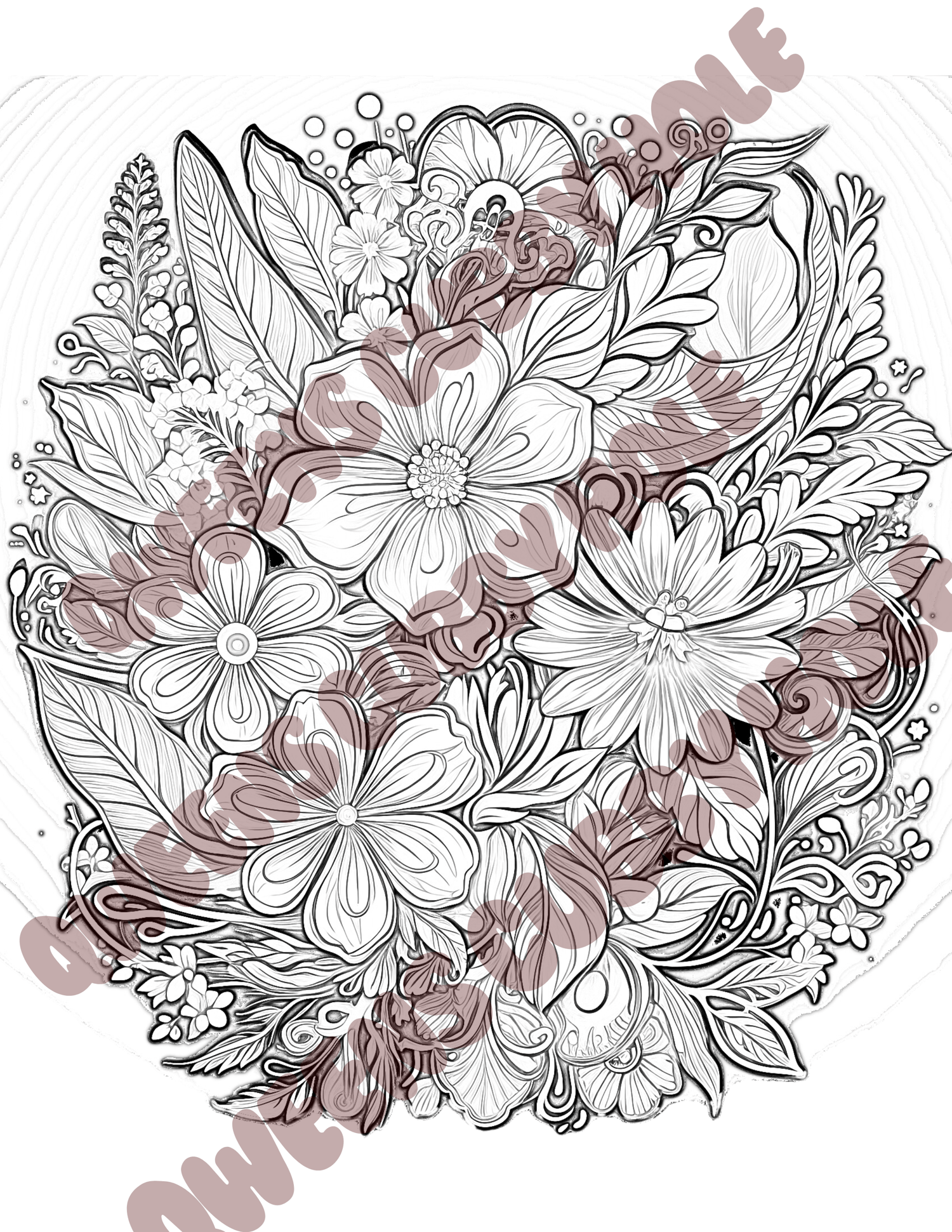 7pc ROUND FLORAL COLORING PAGE BUNDLE